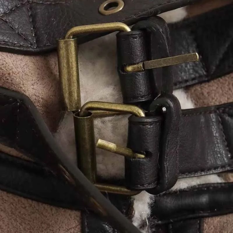 Soft suede and leather accents are combined with functional buckle straps, creating a piece that’s both warm and resilient.