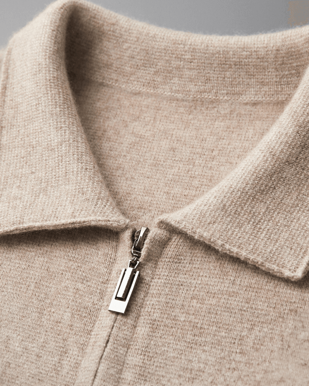 The Gentleman Fit 6 - Desert Breeze is the epitome of relaxed elegance. Featuring a beige wool cardigan, light stretch trousers, and the iconic Heritage Loafers, this outfit blends effortless style with everyday comfort.
