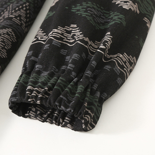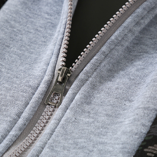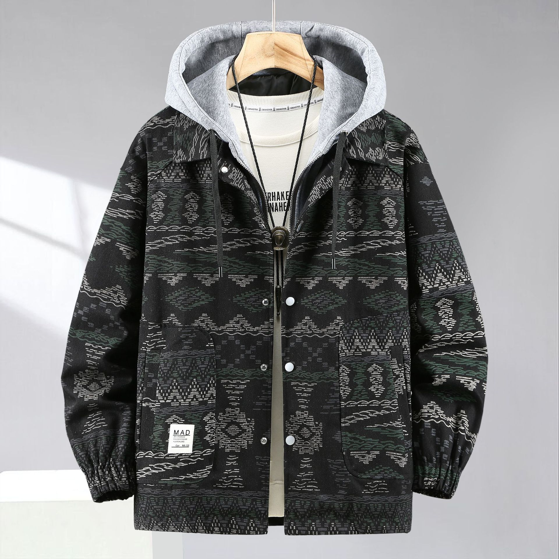This cozy hooded jacket features a geometric pattern that stands out while maintaining a casual vibe. The gray hood lining adds warmth for chilly days while snap buttons make it easy to throw on when heading out the door.