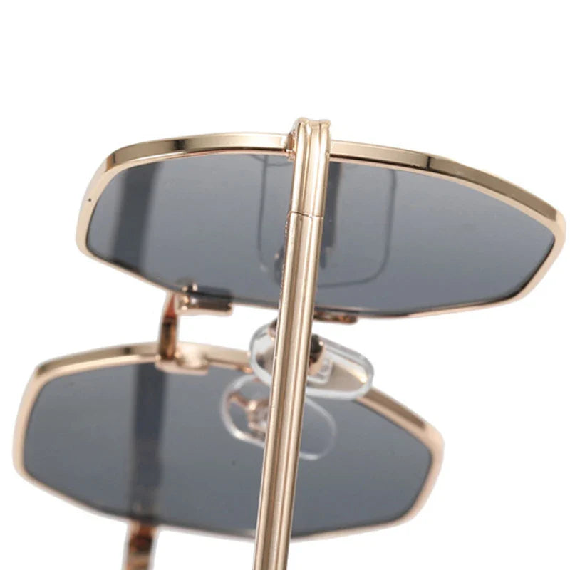 Featuring a polished metal alloy frame, precision engineered UV protective lenses, and comfortable nose pieces. The unique shape adds some personality to your outfits and will have everyone asking where you got them.